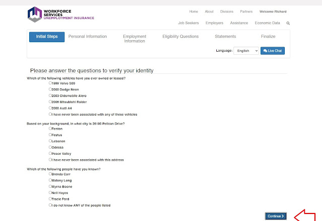 16. You will be directed to the main page of the Utah Unemployment page, Then click on Continue..
